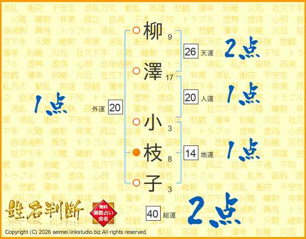 柳澤小枝子さんの天運は26画の2点!