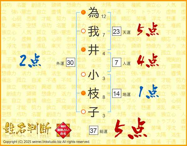 為我井小枝子さんの総運は37画の5点!