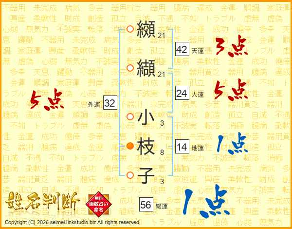 纐纈小枝子さんの総運は56画の1点!