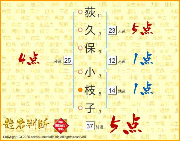 荻久保小枝子さんの総運は37画の5点!