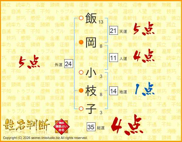 飯岡小枝子さんの総運は35画の4点!