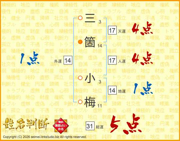 三箇小梅さんの総運は31画の5点!