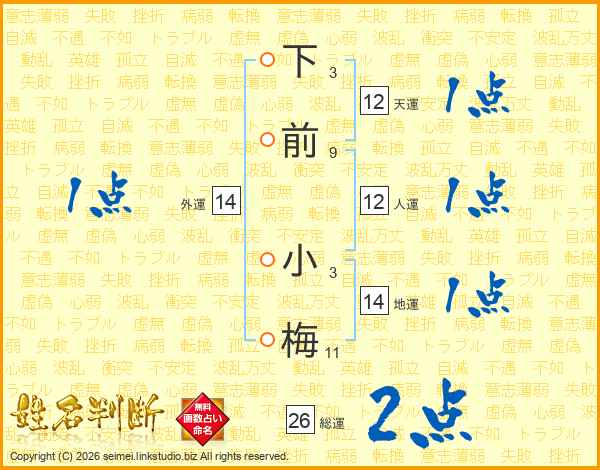 下前小梅さんの総運は26画の2点!