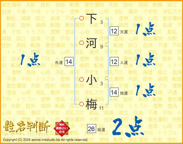 下河小梅さんの総運は26画の2点!