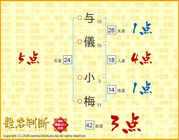 与儀小梅さんの総運は42画の3点!