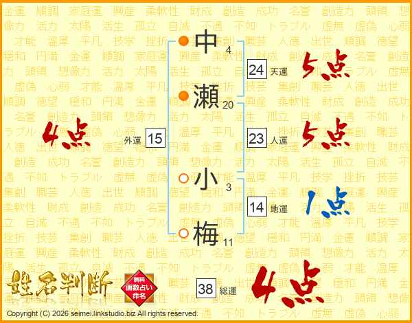 中瀬小梅さんの総運は38画の4点!