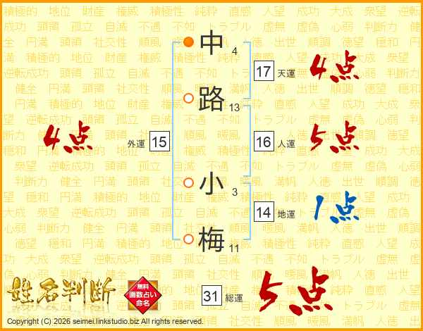 中路小梅さんの総運は31画の5点!