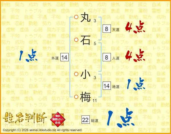 丸石小梅さんの総運は22画の1点!