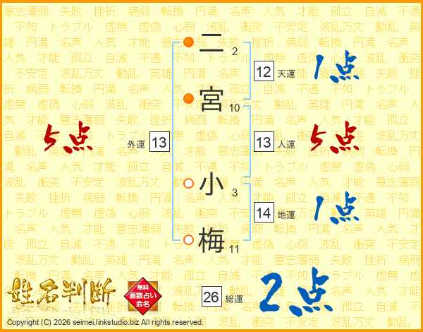 二宮小梅さんの総運は26画の2点!