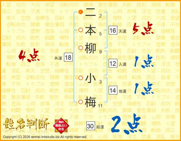 二本柳小梅さんの総運は30画の2点!