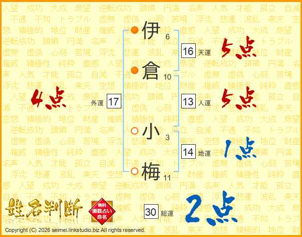 伊倉小梅さんの総運は30画の2点!