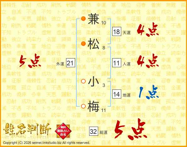兼松小梅さんの総運は32画の5点!