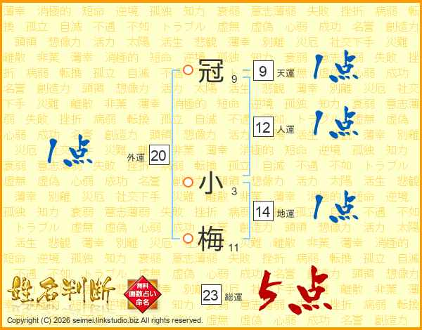冠小梅さんの総運は23画の5点!