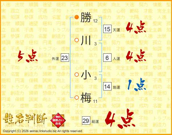 勝川小梅さんの総運は29画の4点!
