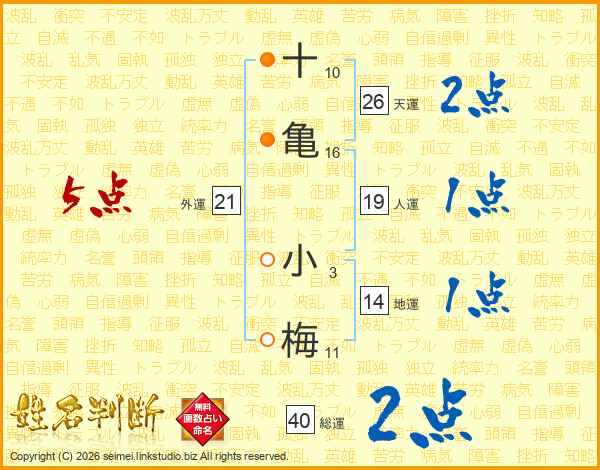 十亀小梅さんの外運は21画の5点!