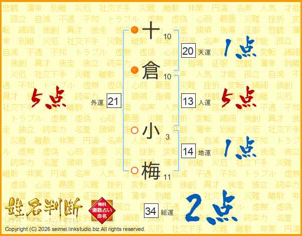 十倉小梅さんの総運は34画の2点!