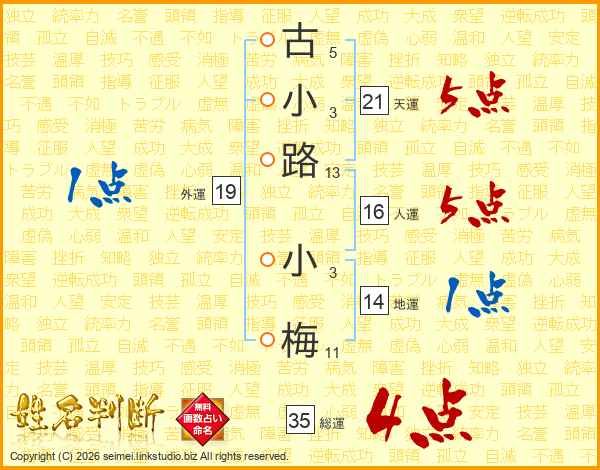 古小路小梅さんの総運は35画の4点!