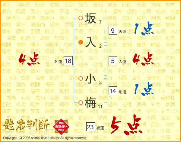 坂入小梅さんの総運は23画の5点!