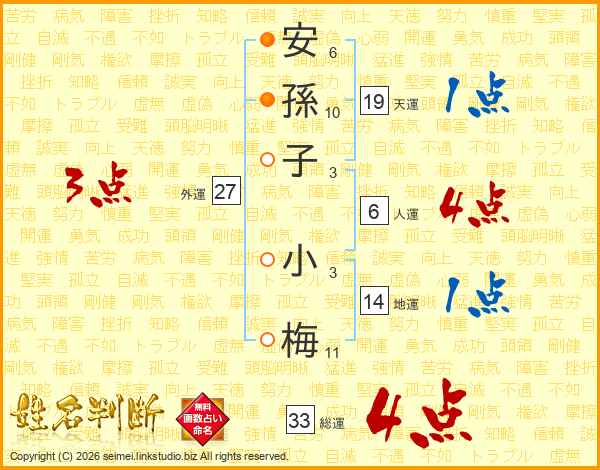 安孫子小梅さんの総運は33画の4点!