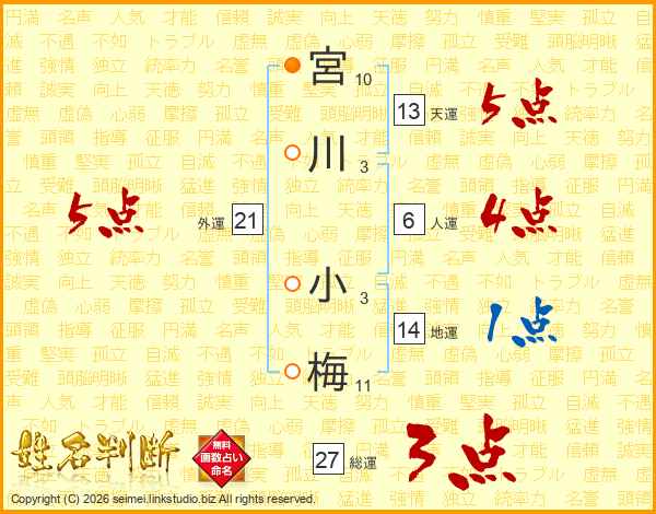 宮川小梅さんの外運は21画の5点!