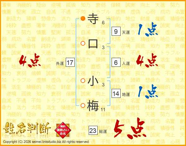 寺口小梅さんの総運は23画の5点!