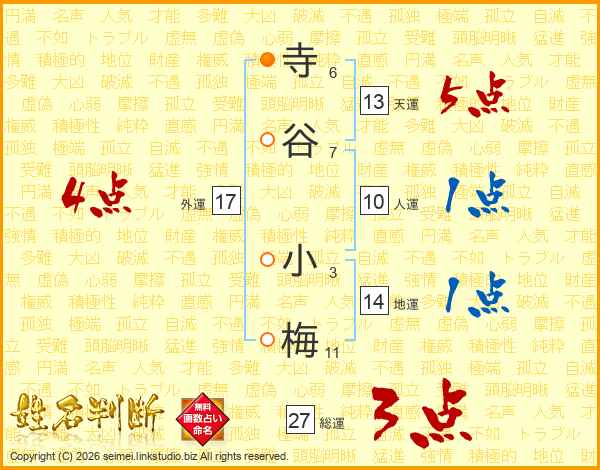 寺谷小梅さんの外運は17画の4点!
