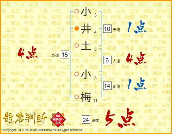 小(3画)井(4画)土(3画) 小(3画)梅(11画)