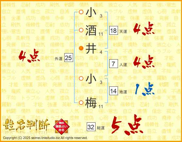 小(3画)酒(11画)井(4画) 小(3画)梅(11画)