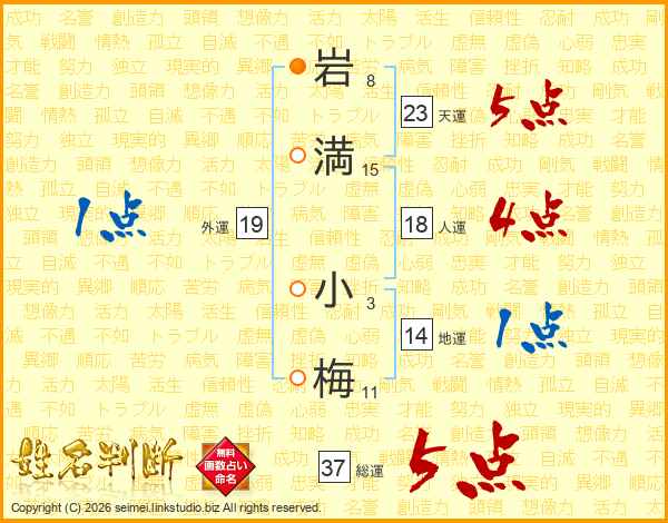 岩満小梅さんの総運は37画の5点!