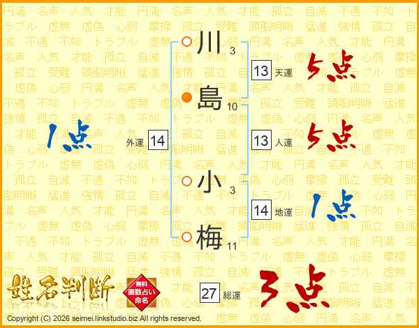 川島小梅さんの総運は27画の3点!