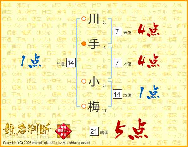川手小梅さんの総運は21画の5点!