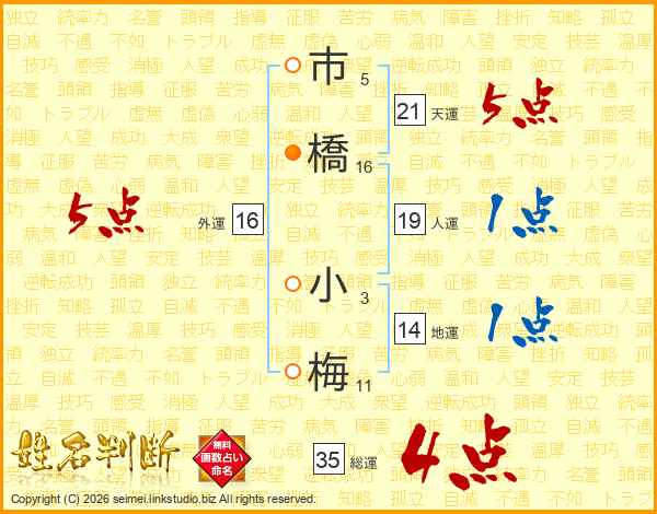 市橋小梅さんの総運は35画の4点!