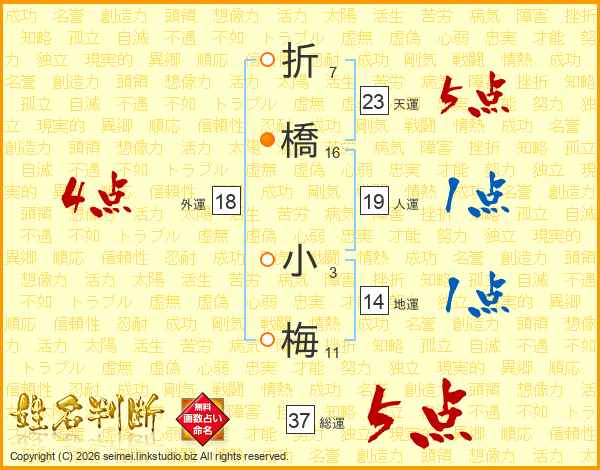 折橋小梅さんの総運は37画の5点!