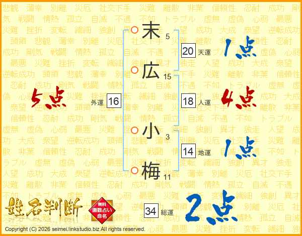 末広小梅さんの天運は20画の1点!