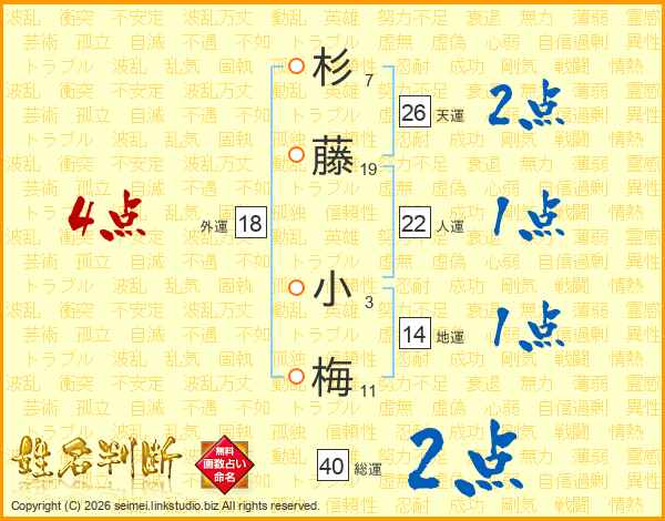 杉藤小梅さんの外運は18画の4点!