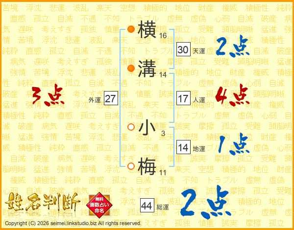 横溝小梅さんの総運は44画の2点!
