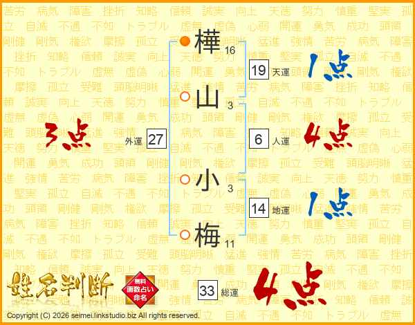 樺山小梅さんの総運は33画の4点!