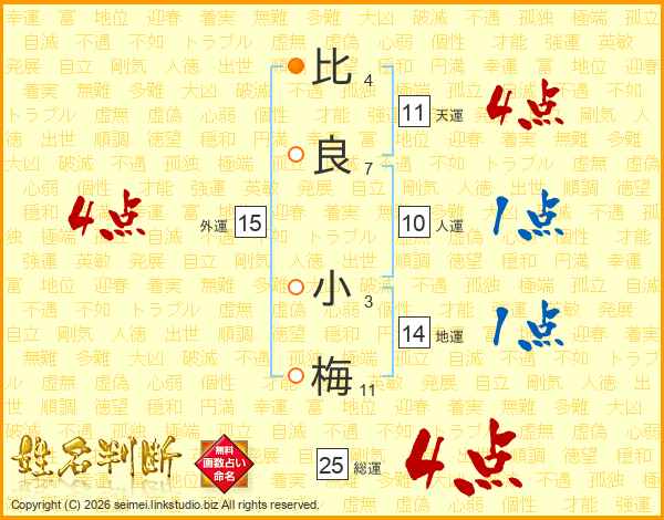 比良小梅さんの総運は25画の4点!