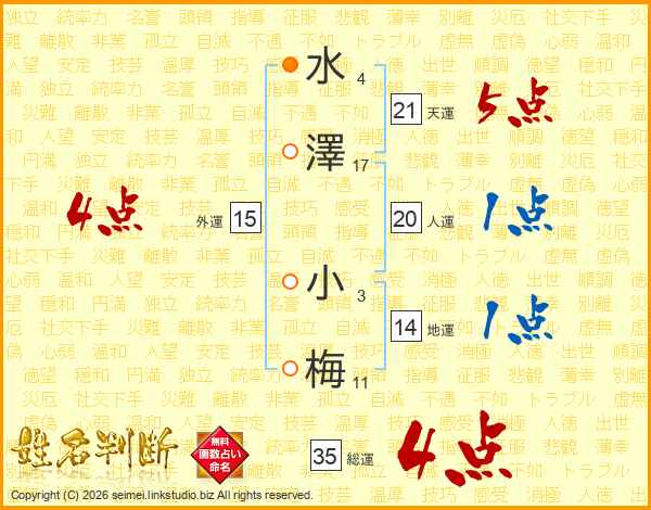 水澤小梅さんの総運は35画の4点!