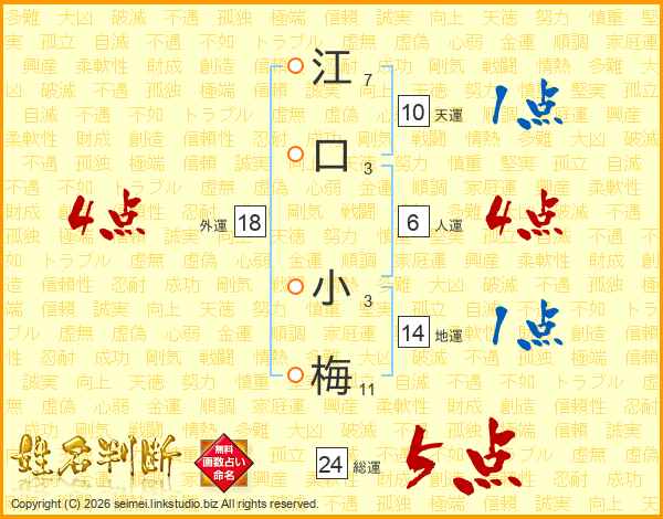 江口小梅さんの外運は18画の4点!