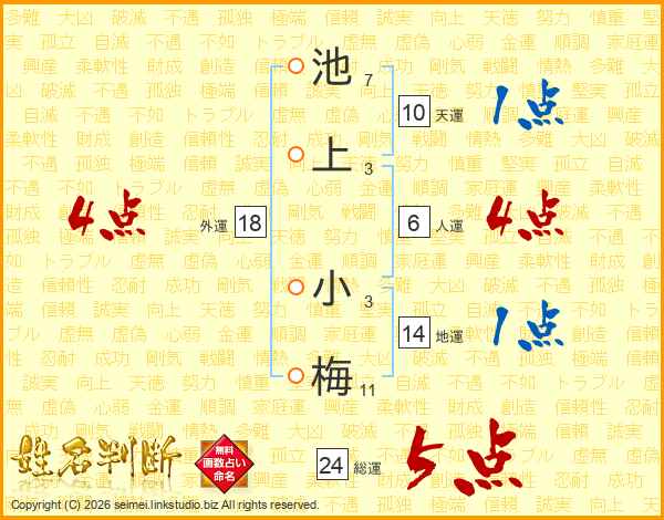 池上小梅さんの総運は24画の5点!