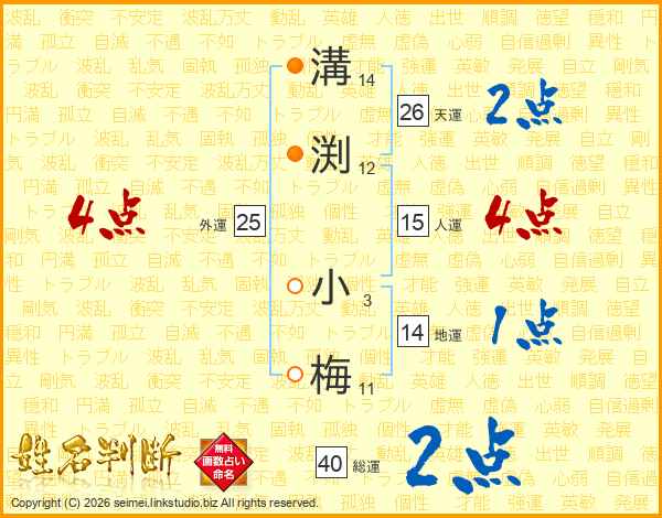 溝(14画)渕(12画) 小(3画)梅(11画)
