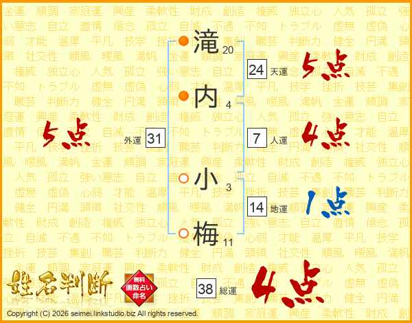 滝内小梅さんの総運は38画の4点!