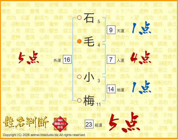 石毛小梅さんの総運は23画の5点!