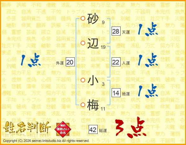 砂辺小梅さんの総運は42画の3点!