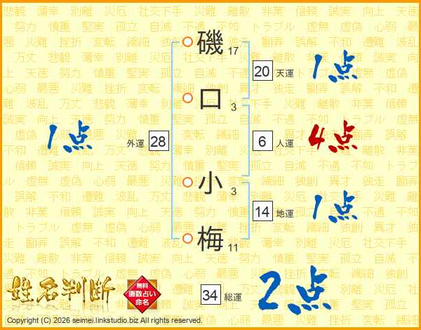 磯口小梅さんの天運は20画の1点!