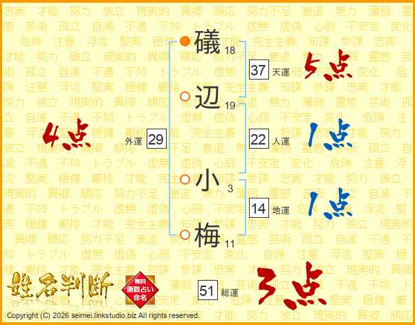 礒辺小梅さんの総運は51画の3点!