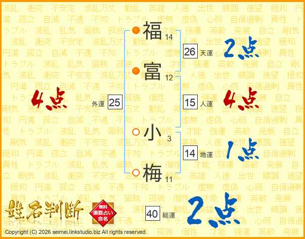 福富小梅さんの総運は40画の2点!