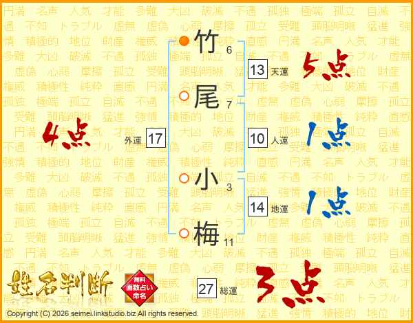 竹尾小梅さんの外運は17画の4点!