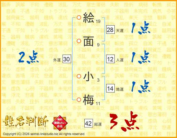 絵面小梅さんの総運は42画の3点!